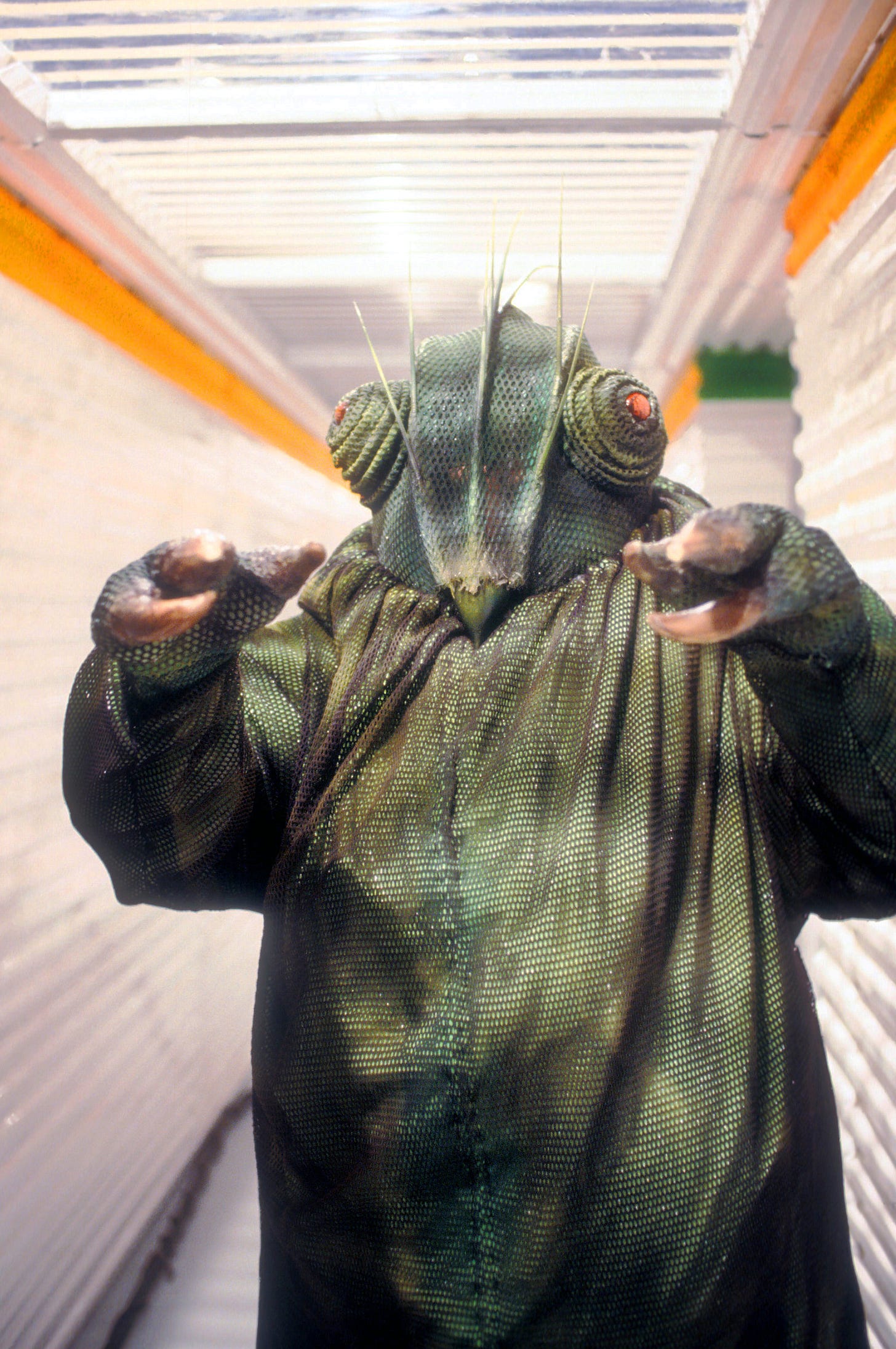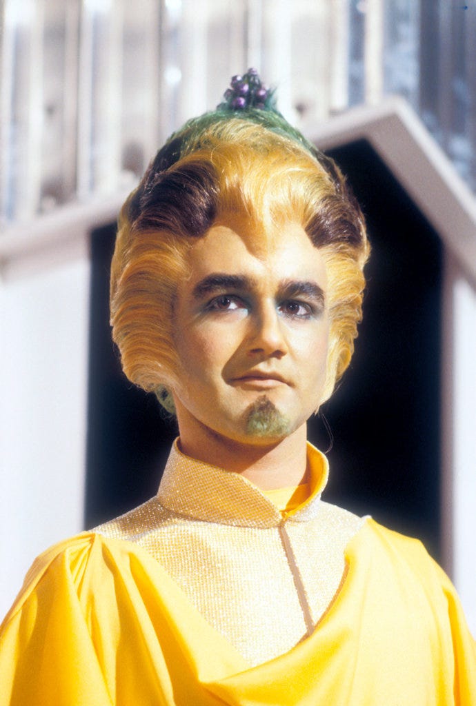 I must say, I like the design of the Argolins. I could have done with a bit more variation in their costumes, but the hair, the makeup, and the little marbles that fall off when they start to die—all very original.