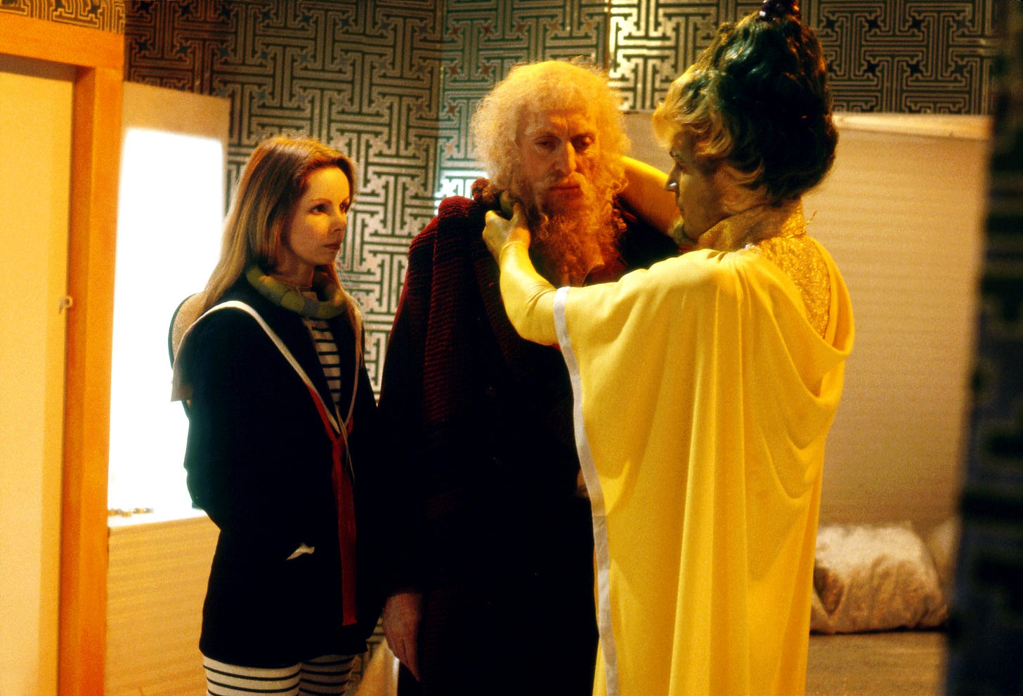 Everyone’s outfits got more costume-y, and the Doctor acquires question marks on parts of his clothing, something that would feature until the end of the program in 1989.